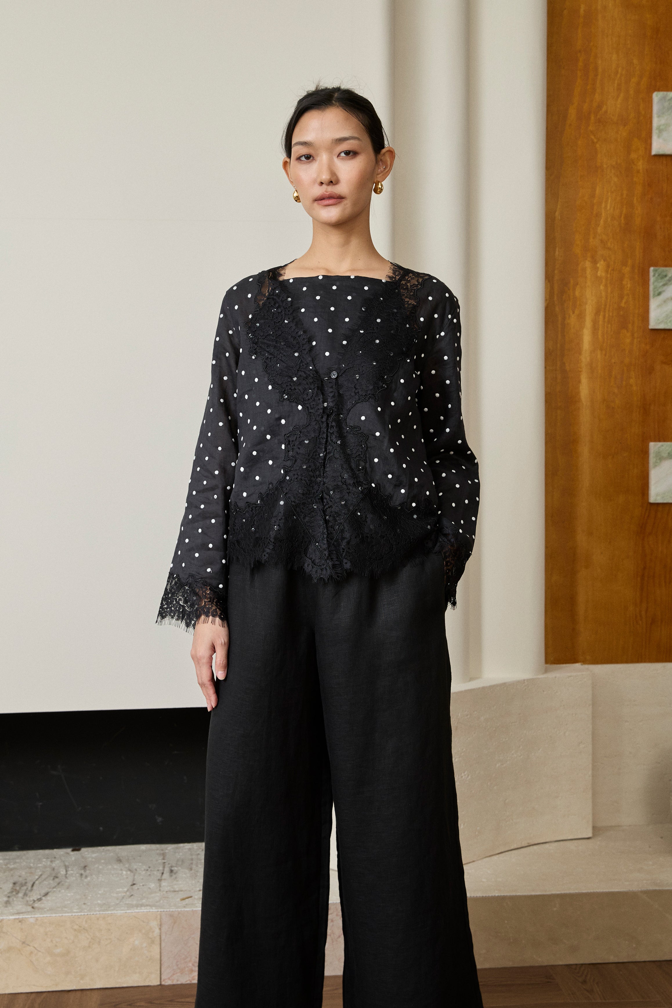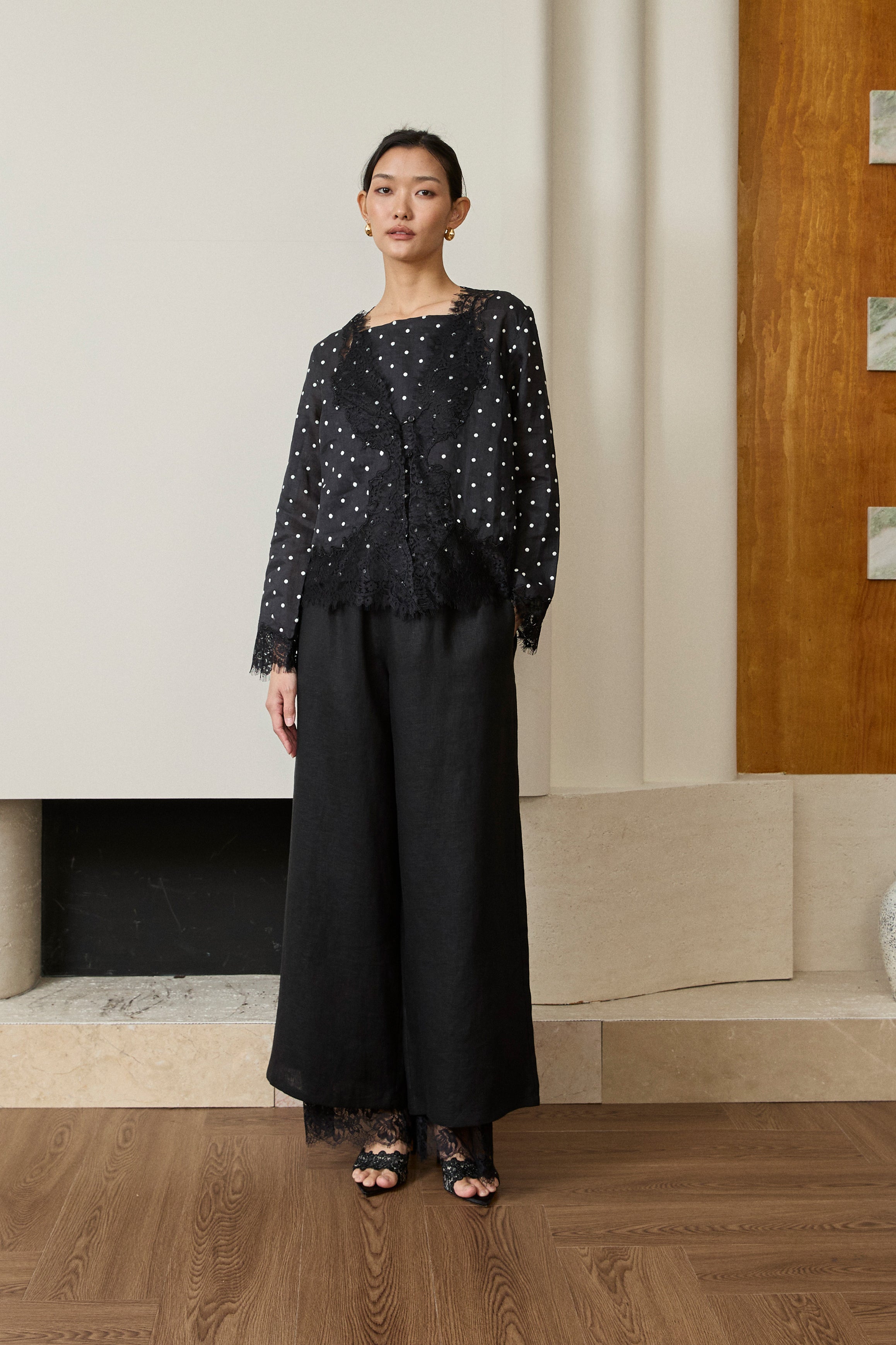 Collete 2-Piece Ramie Blouse in Black Polka