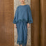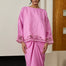 An oversized Kedah silhouette rendered in linen, with drop shoulders and full sleeves. Featuring 'sulam goyang' detailing at the cuffs and hem. Paired with a slip-on knot skirt.