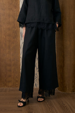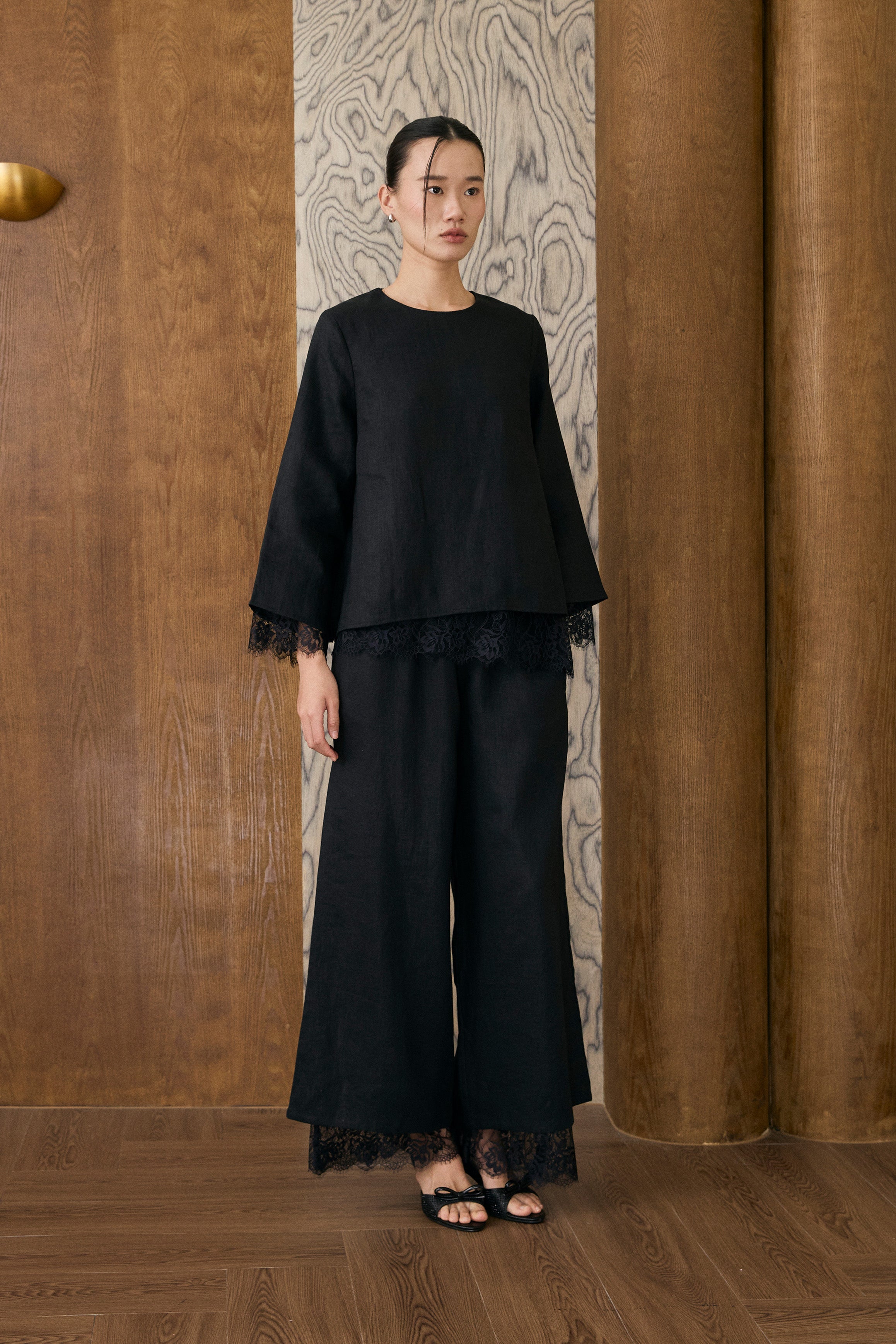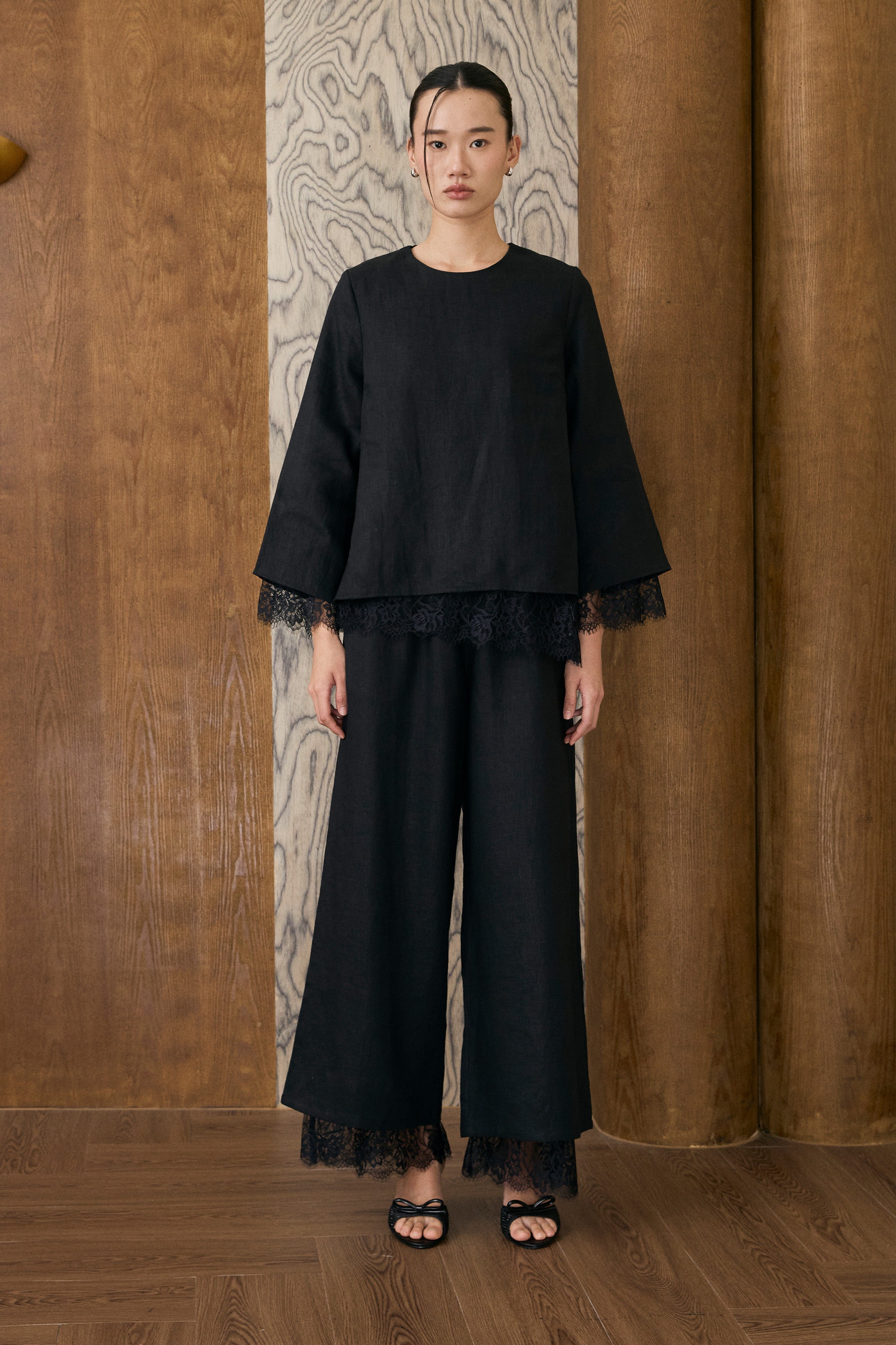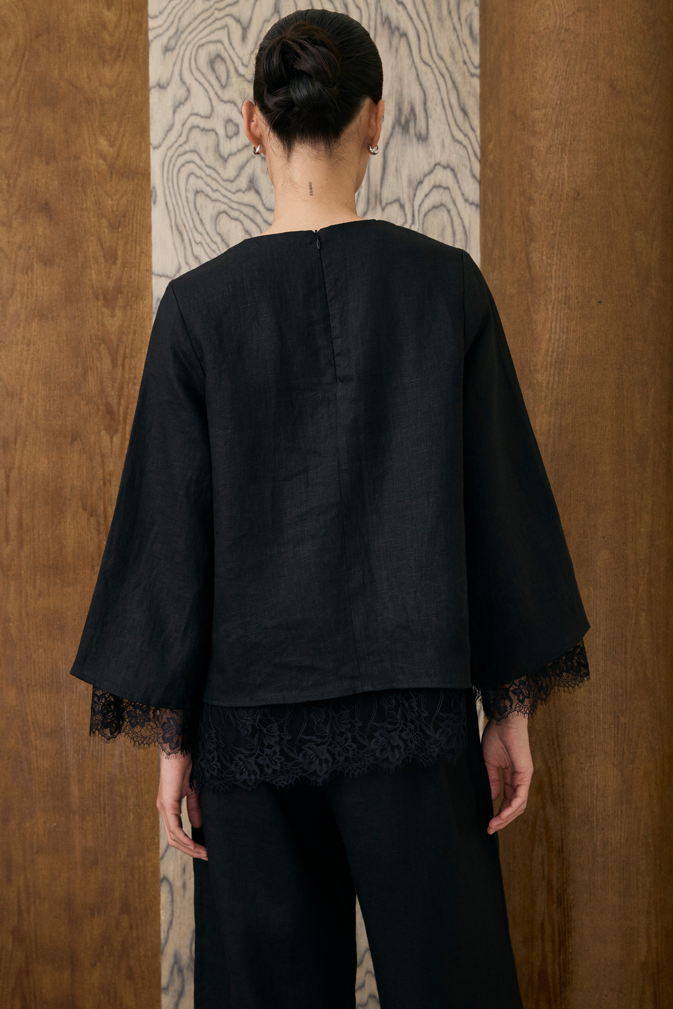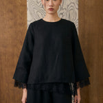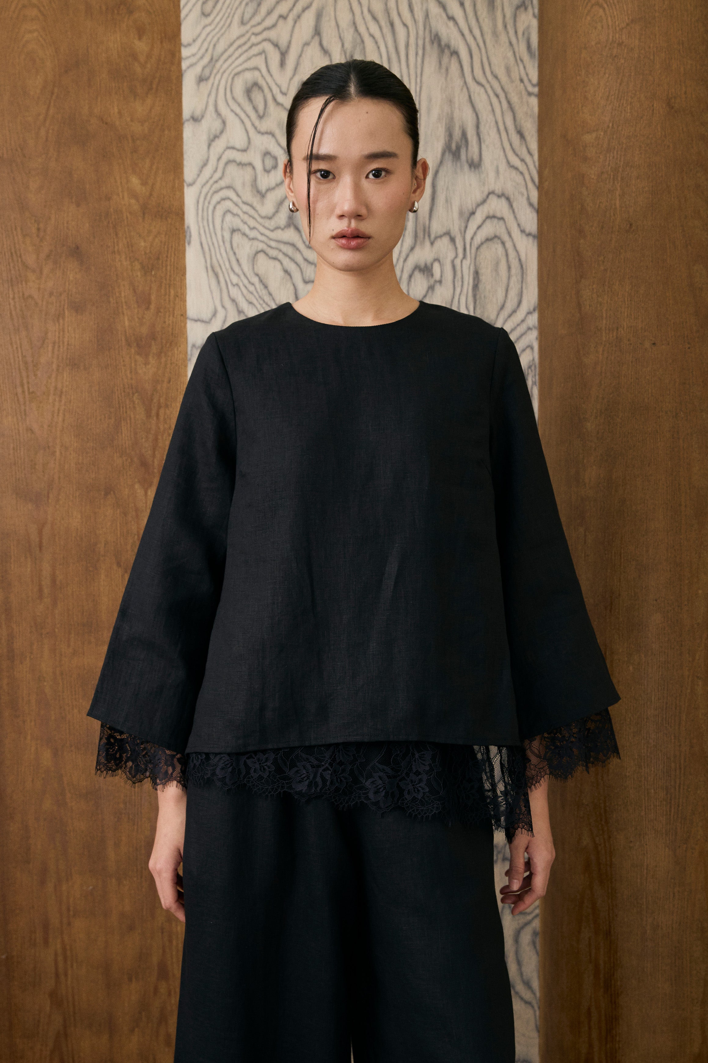 A relaxed-fit top, with a round neckline. Finished with a layered hem and delicate lace detailing. Rendered in linen, lined in cotton.
