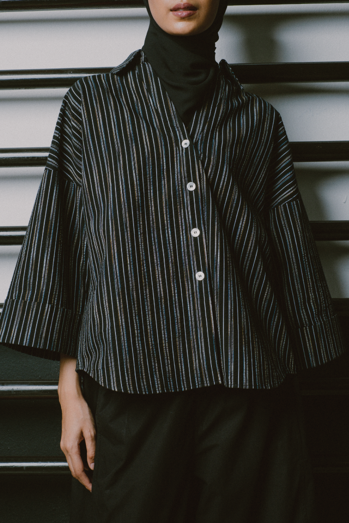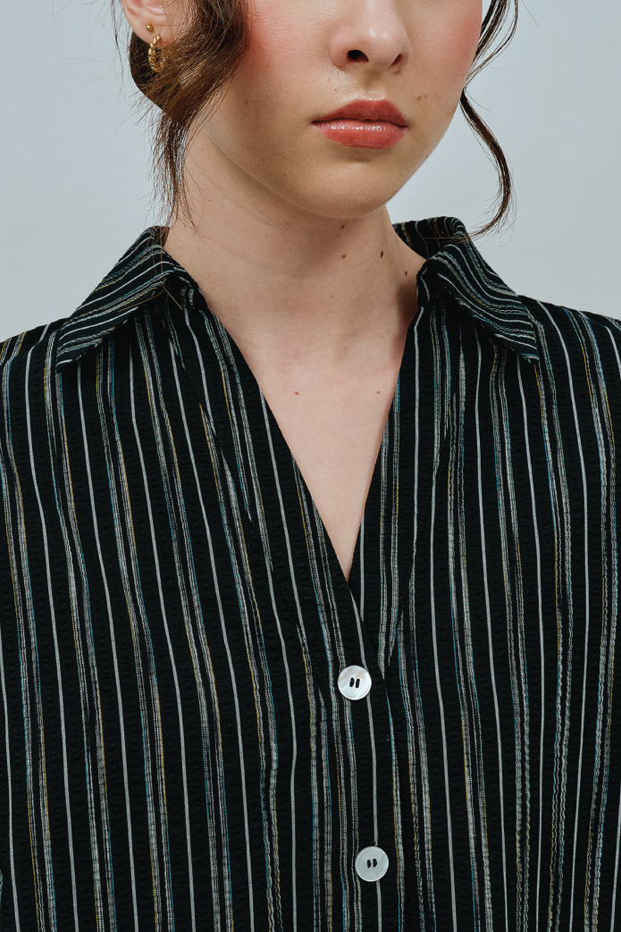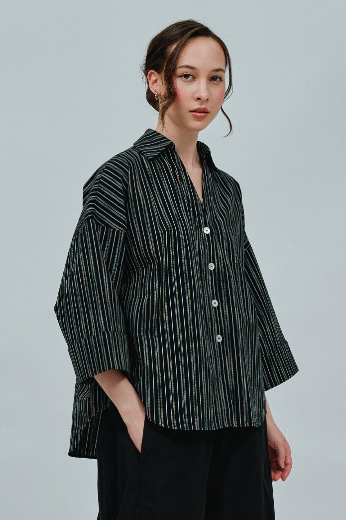 Sculptor Poplin Shirt in Black Stripe