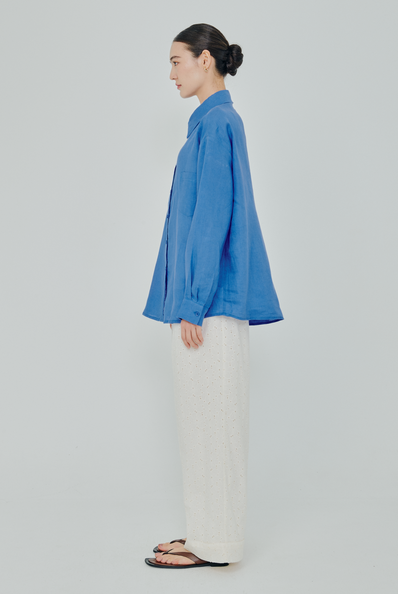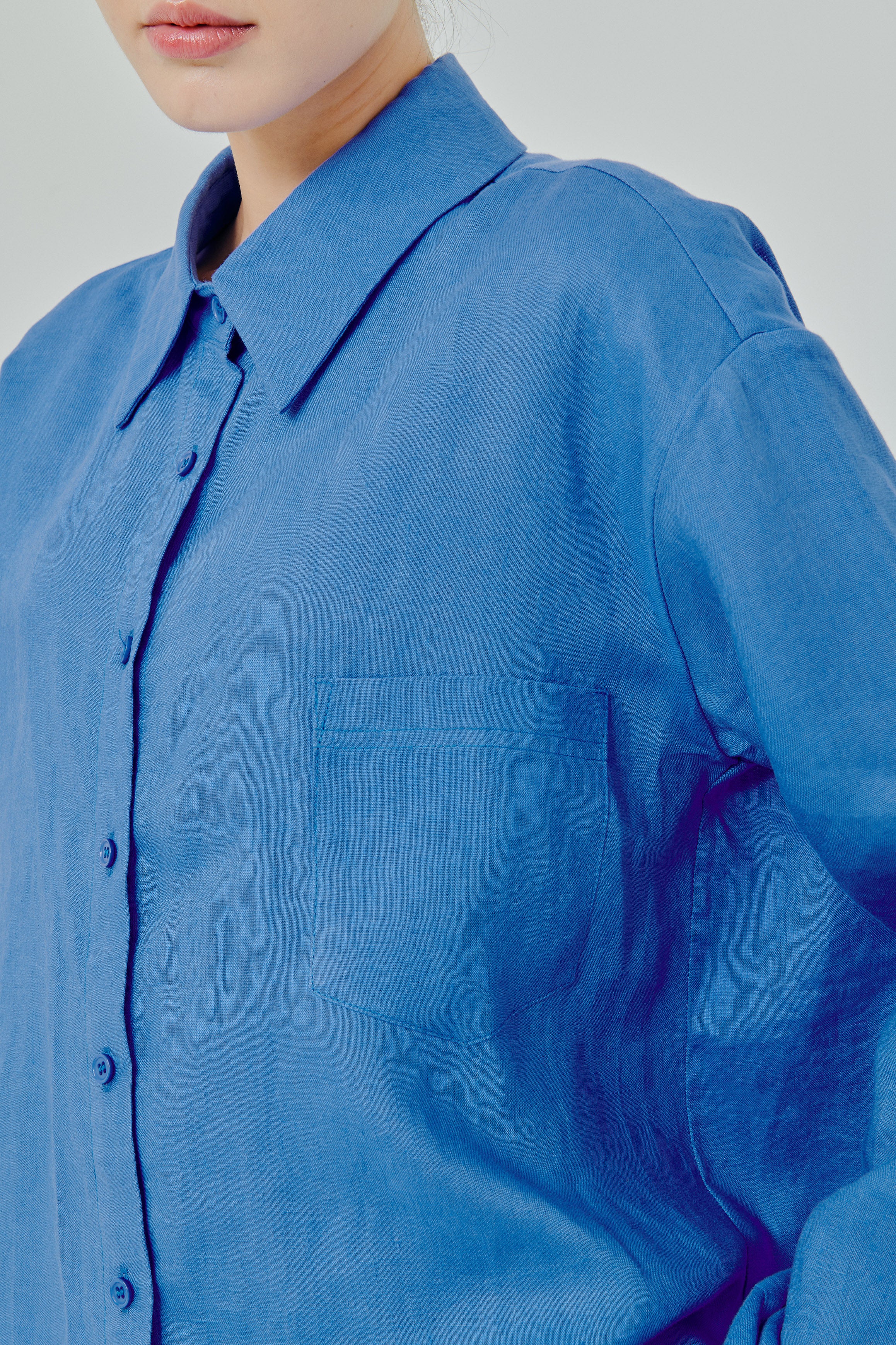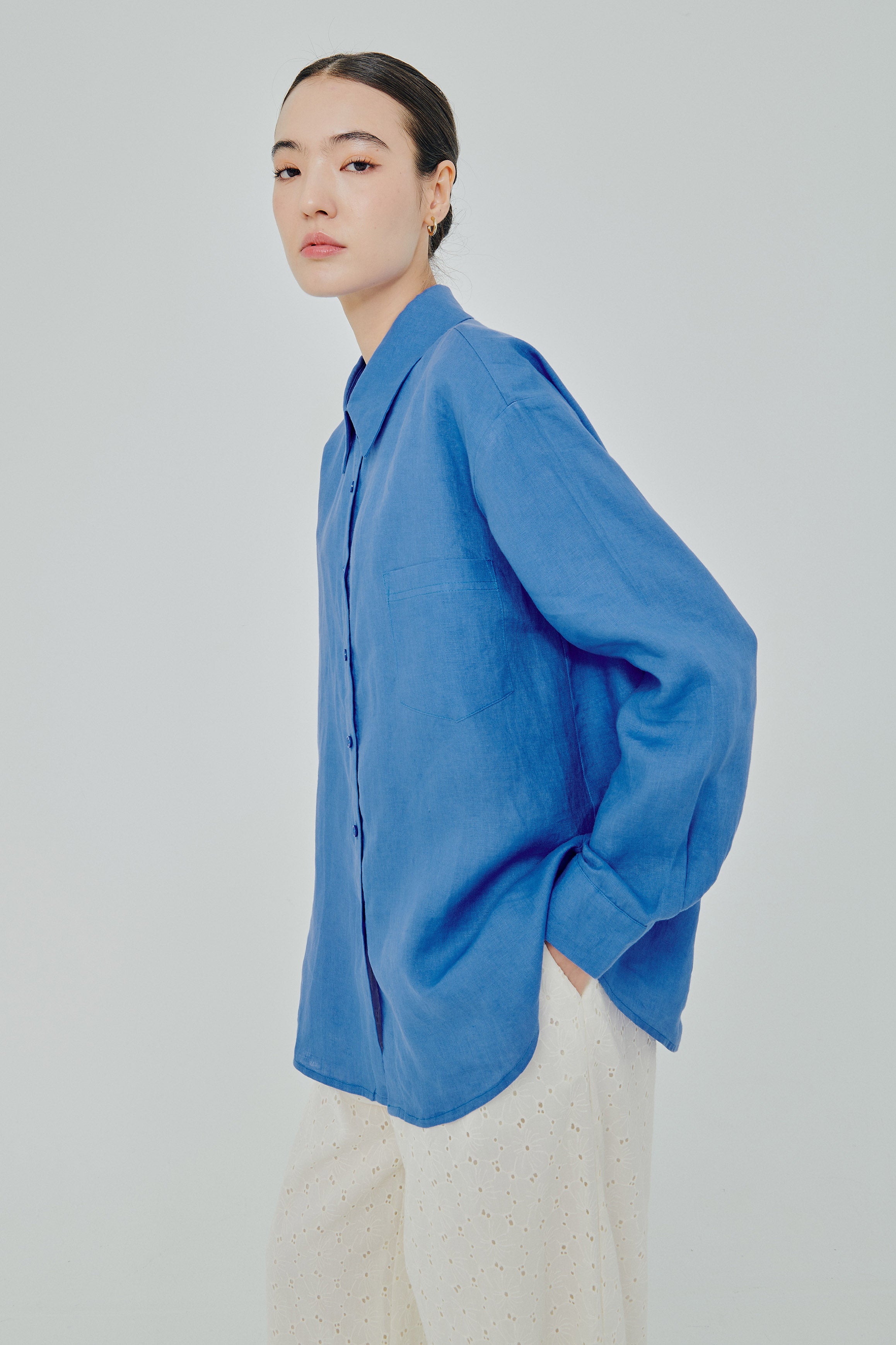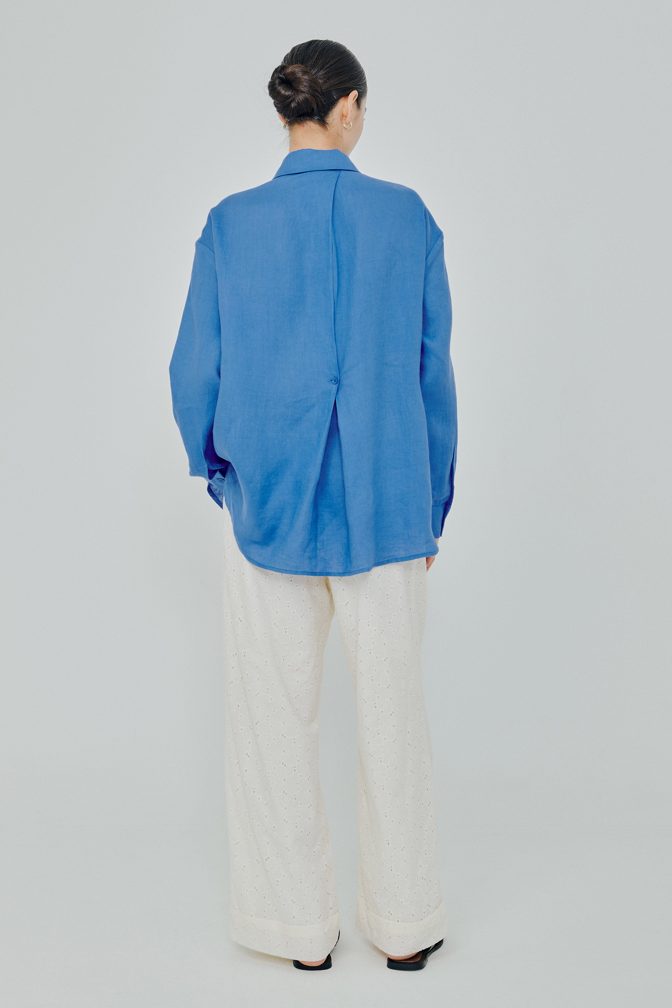 An oversized fit, with a button-back design and chest pocket. Rendered in linen.