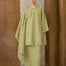 A long kurung top with drop shoulders, a front hook-and-eye closure and intricate multicolour embroidery along the neckline, sleeves and hem. Paired with a pencil skirt featuring embroidery at the hem, an elastic waistband, and an inverted back pleat. Rendered in ramie, and lined in cotton.