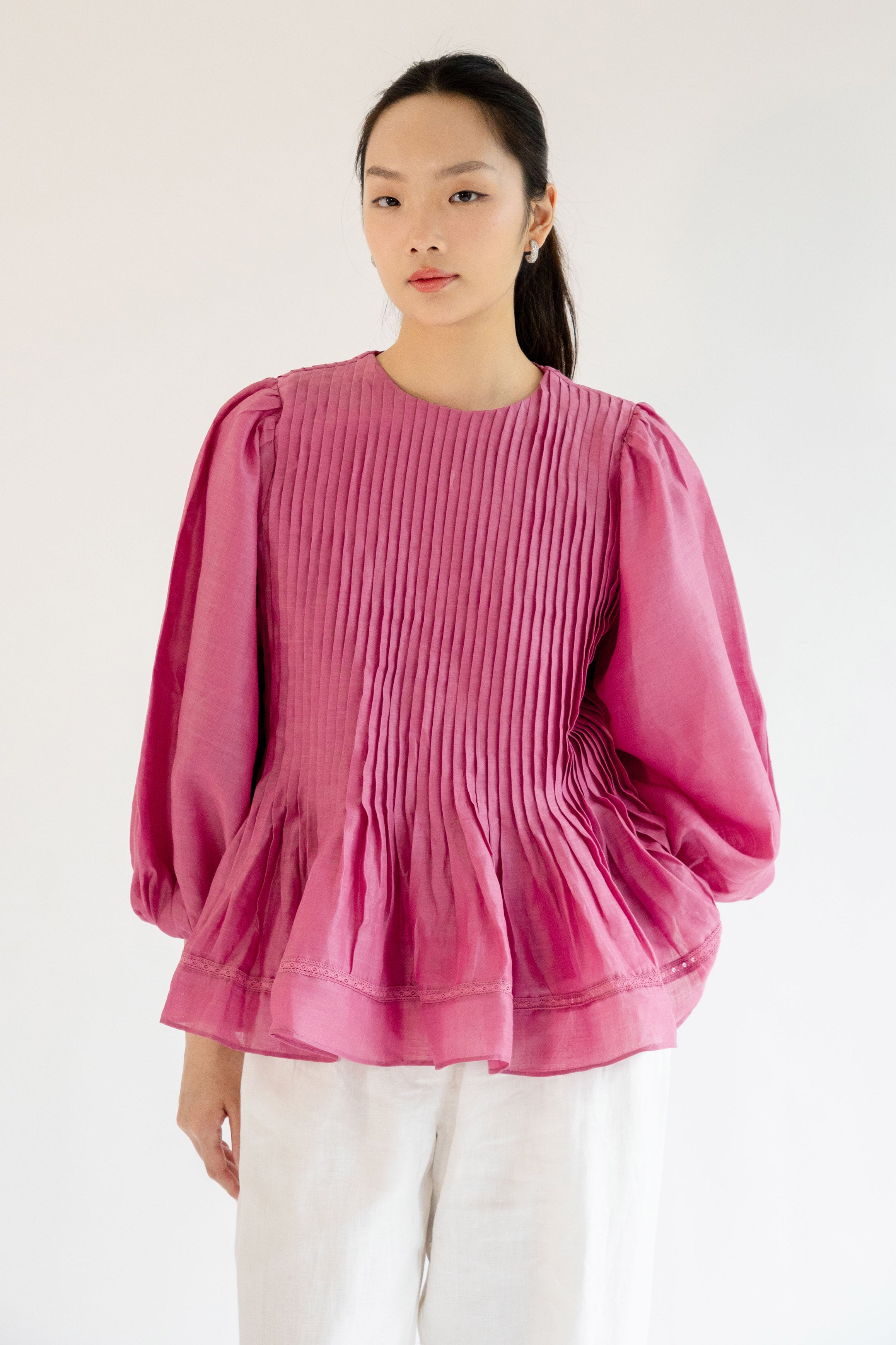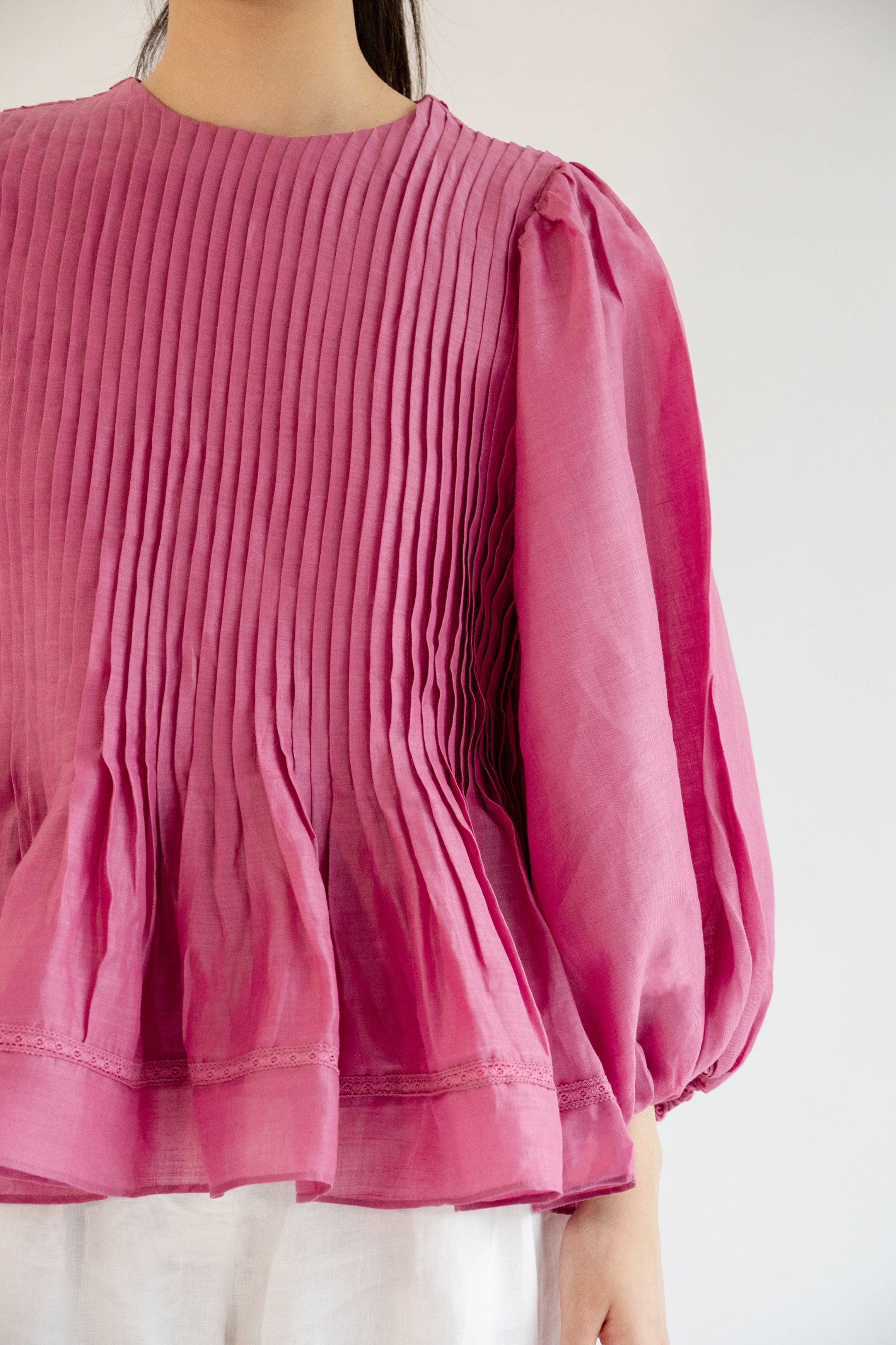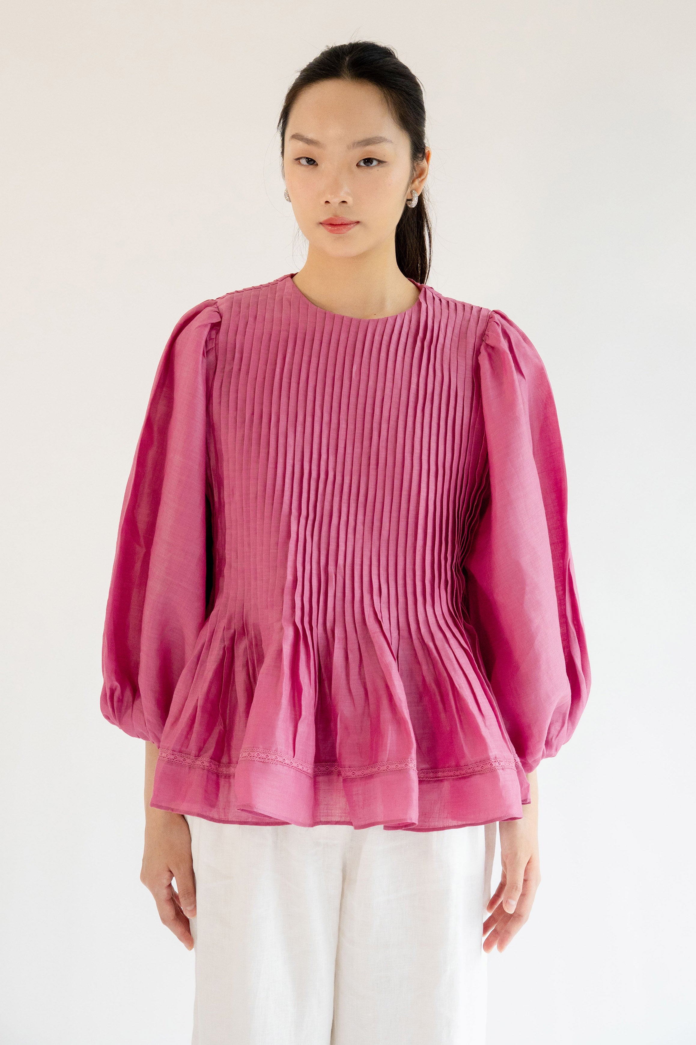 A structured blouse with a peplum silhouette and puffed sleeves. Rendered in ramie and lined in cotton.