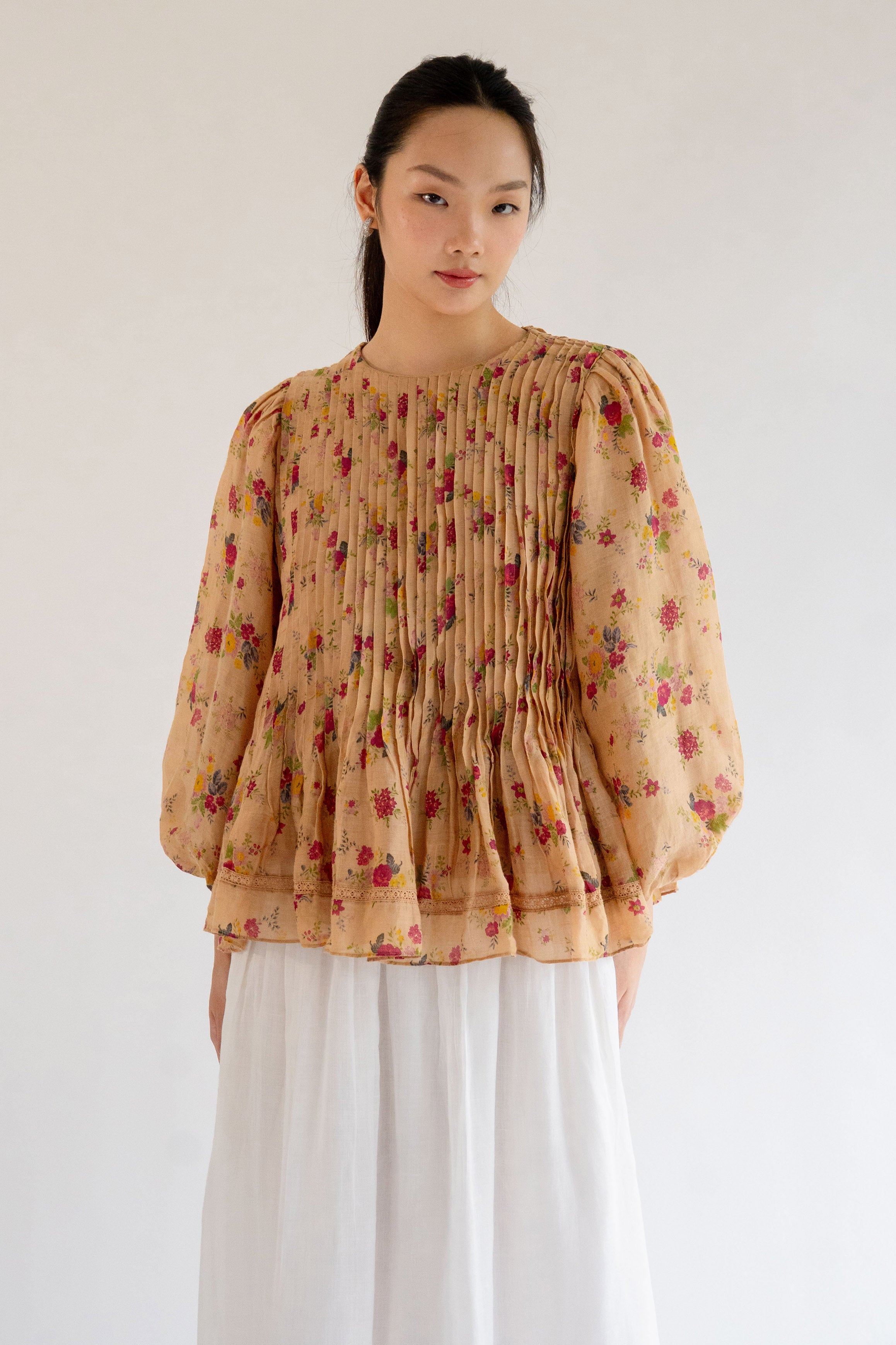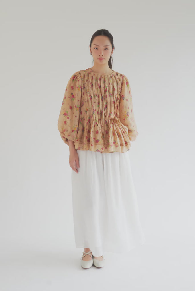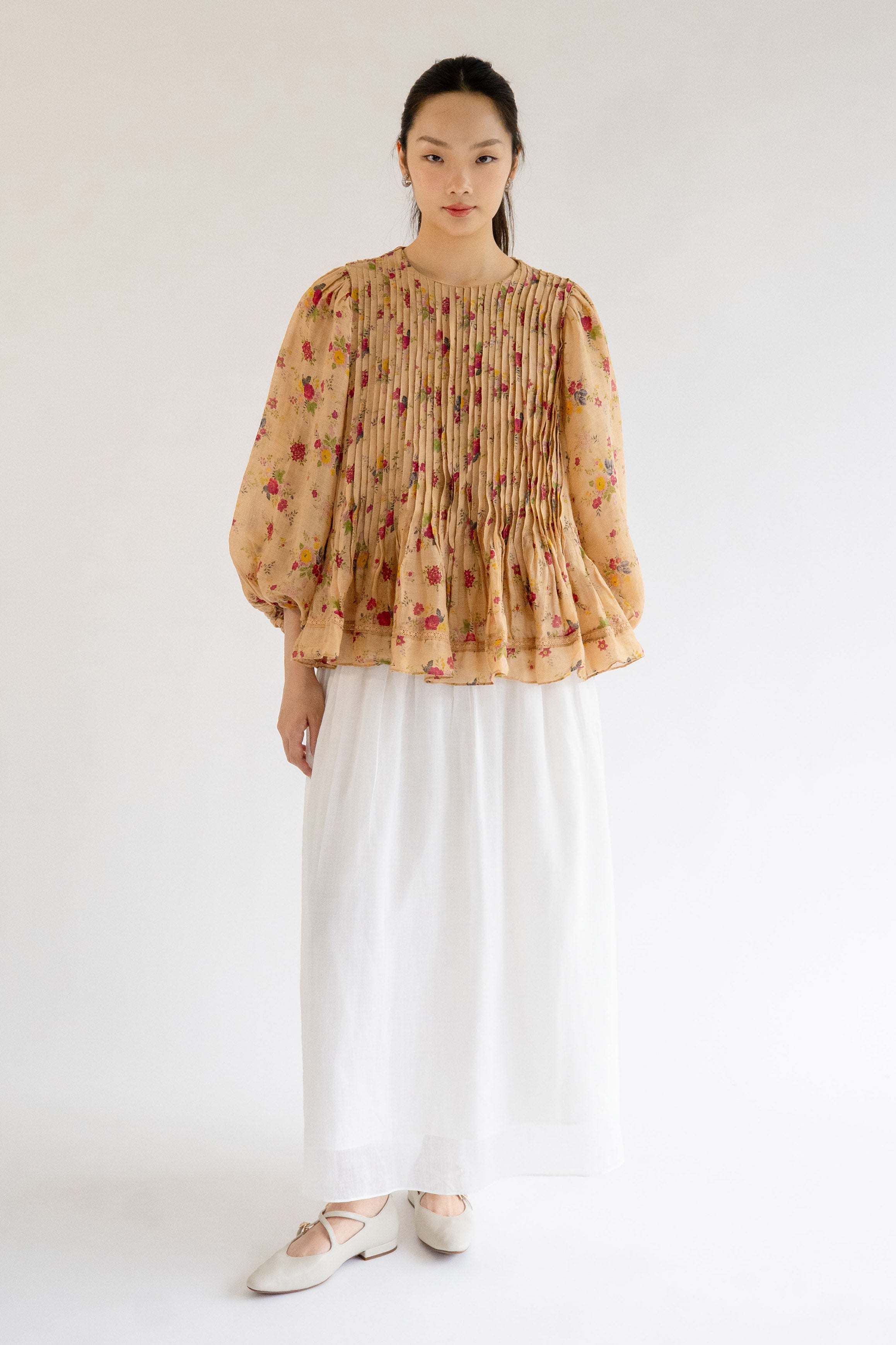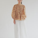 A structured blouse with a peplum silhouette and puffed sleeves. Rendered in ramie and lined in cotton.
