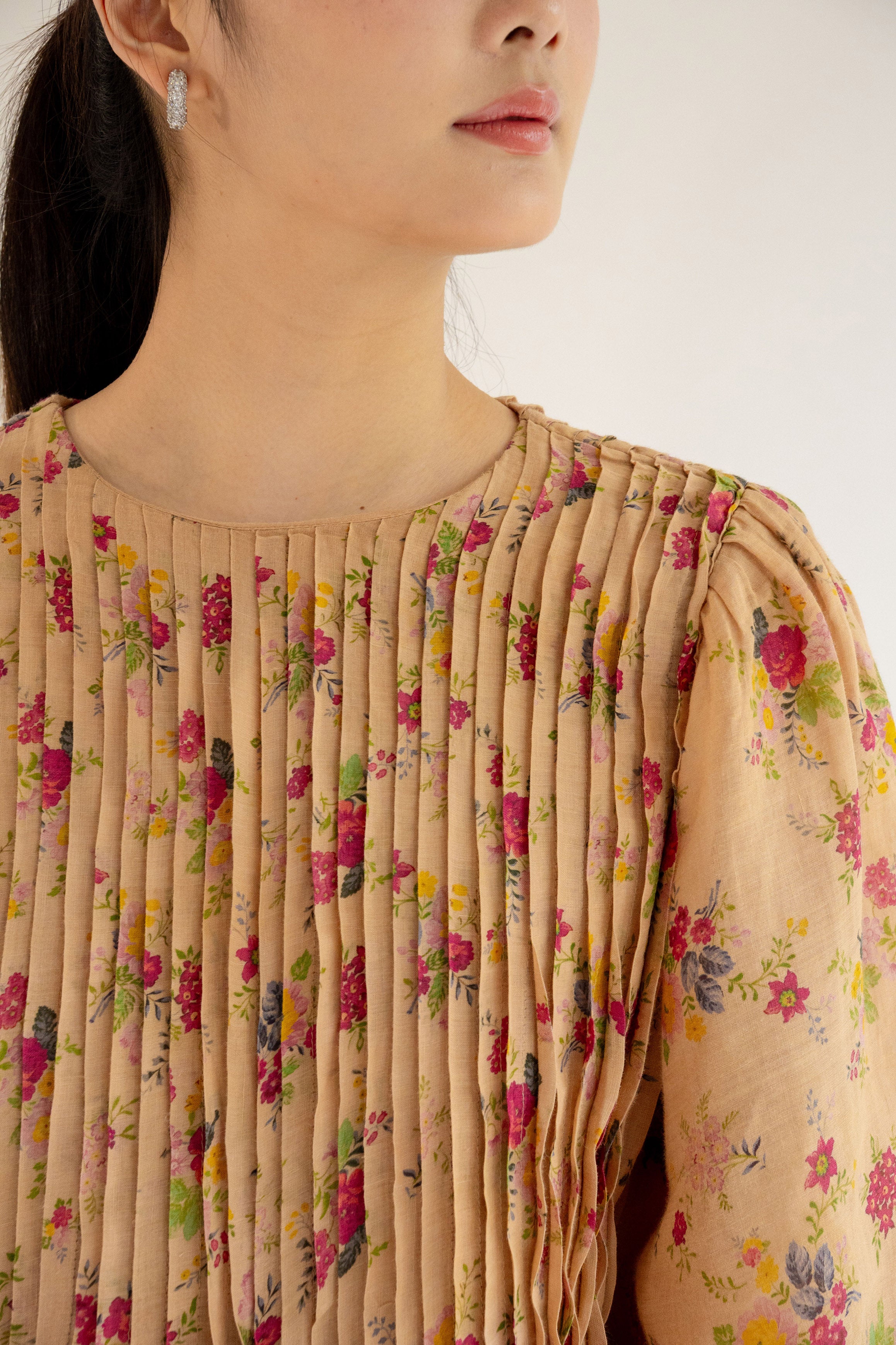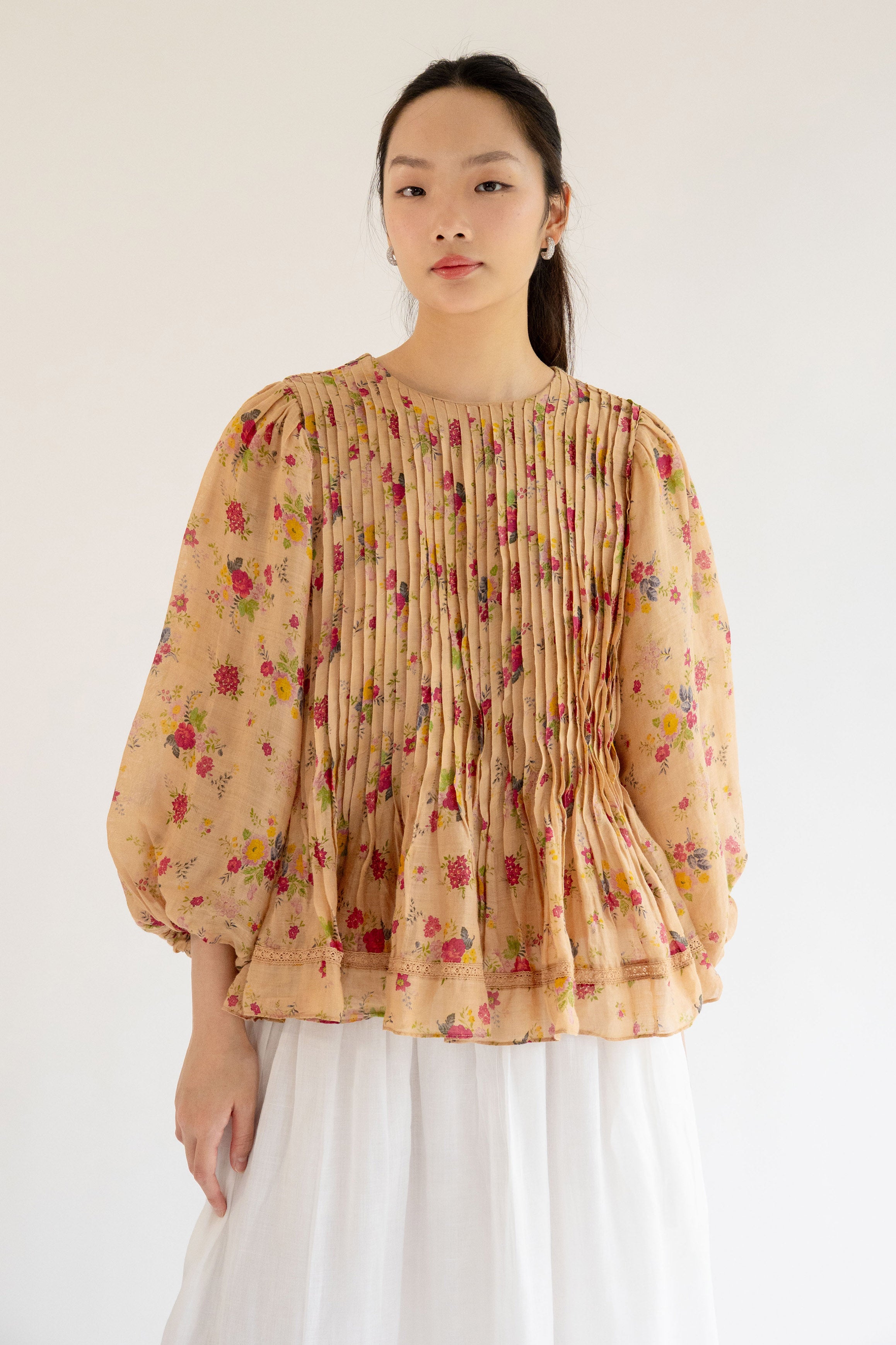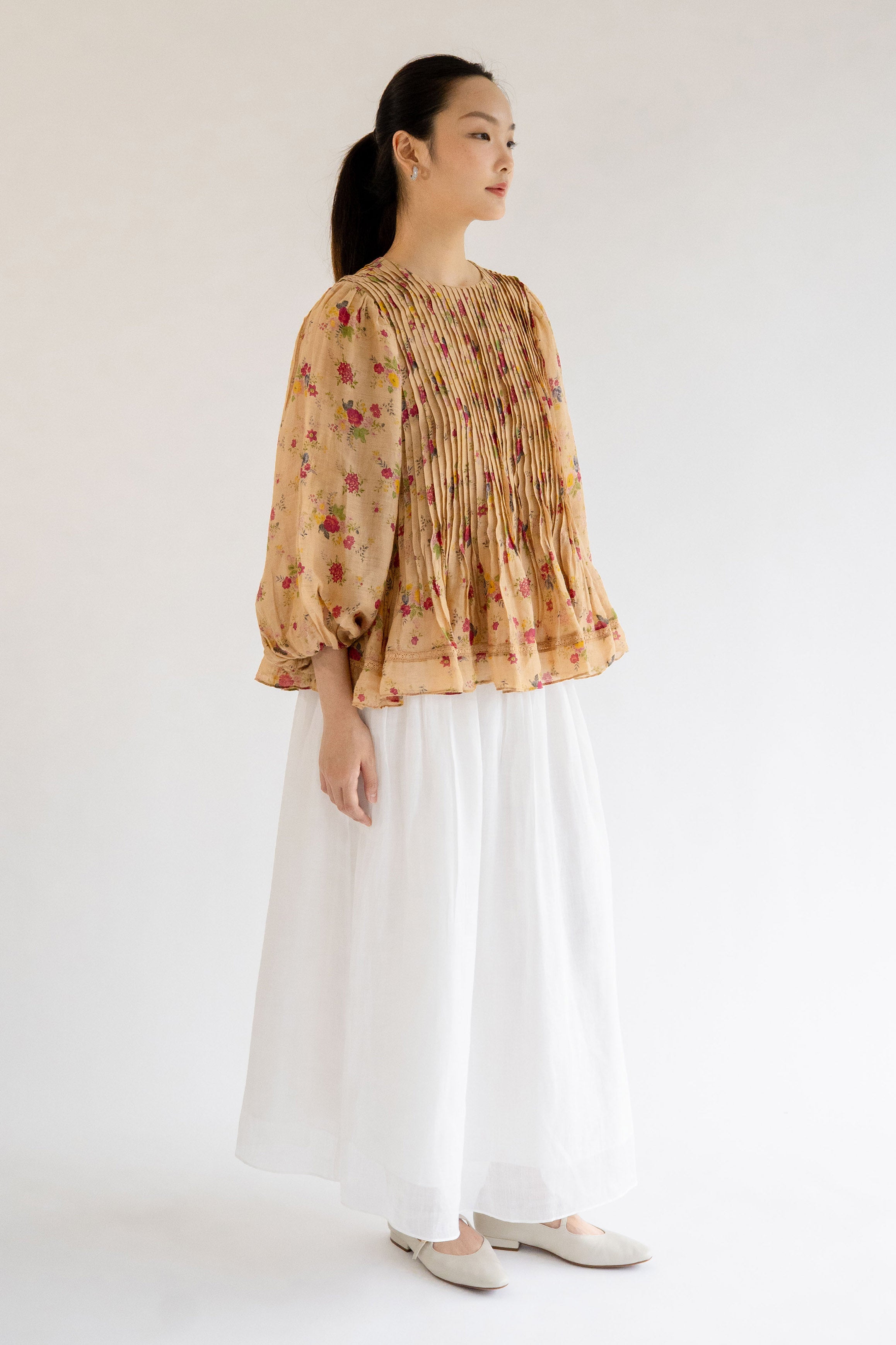 A structured blouse with a peplum silhouette and puffed sleeves. Rendered in ramie and lined in cotton.