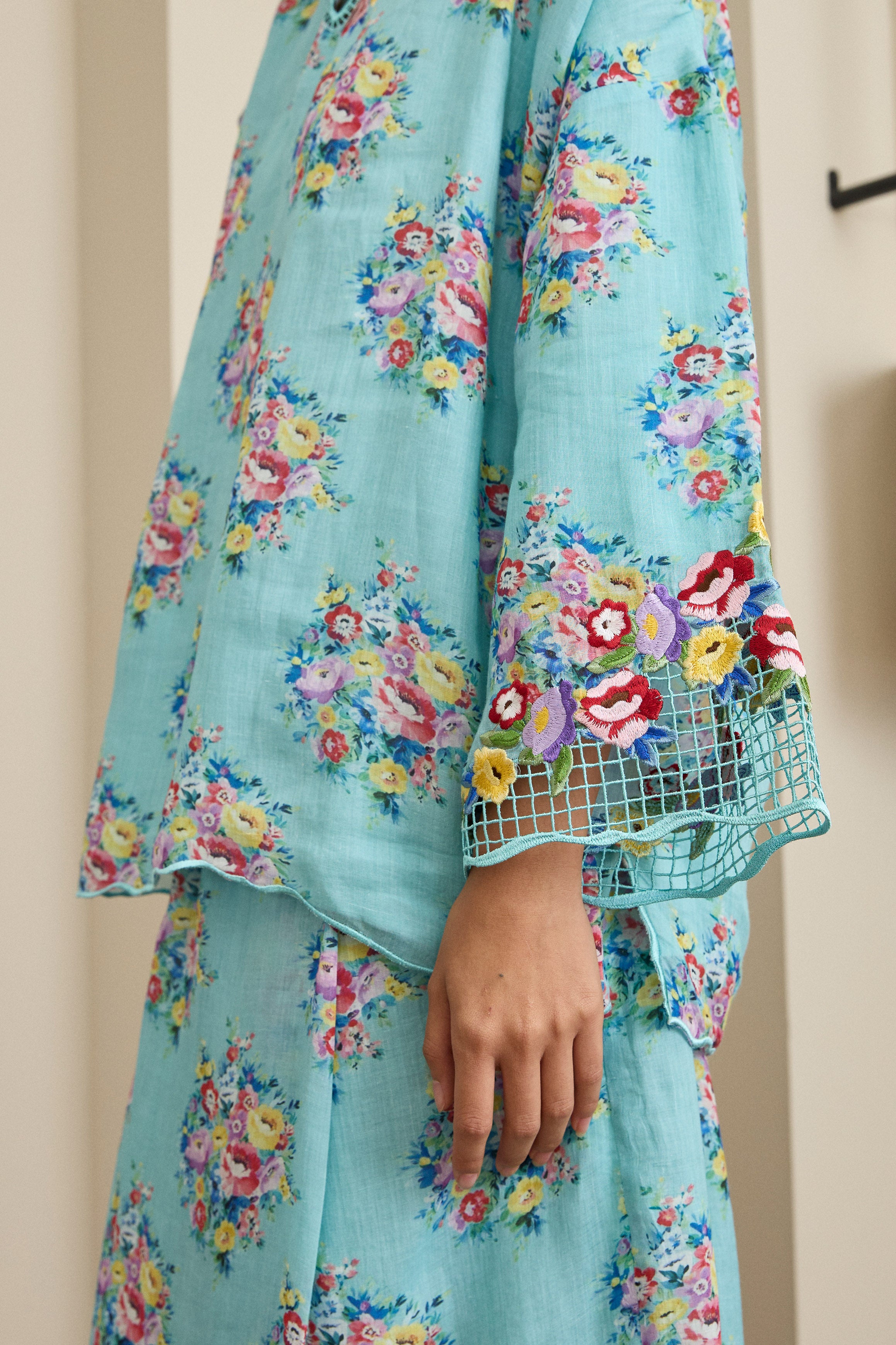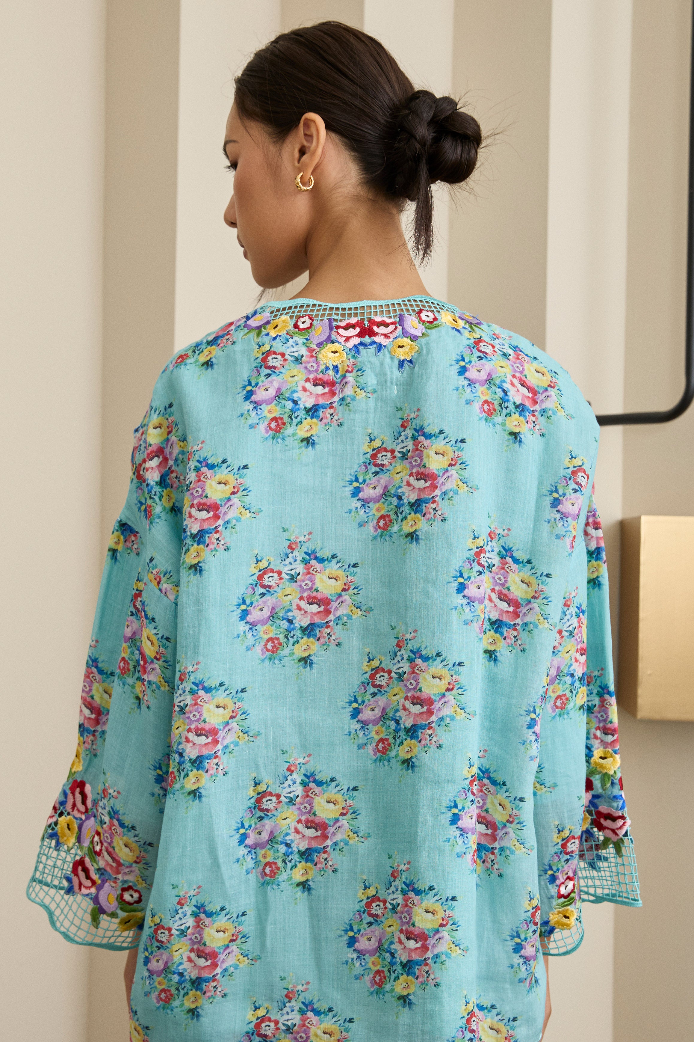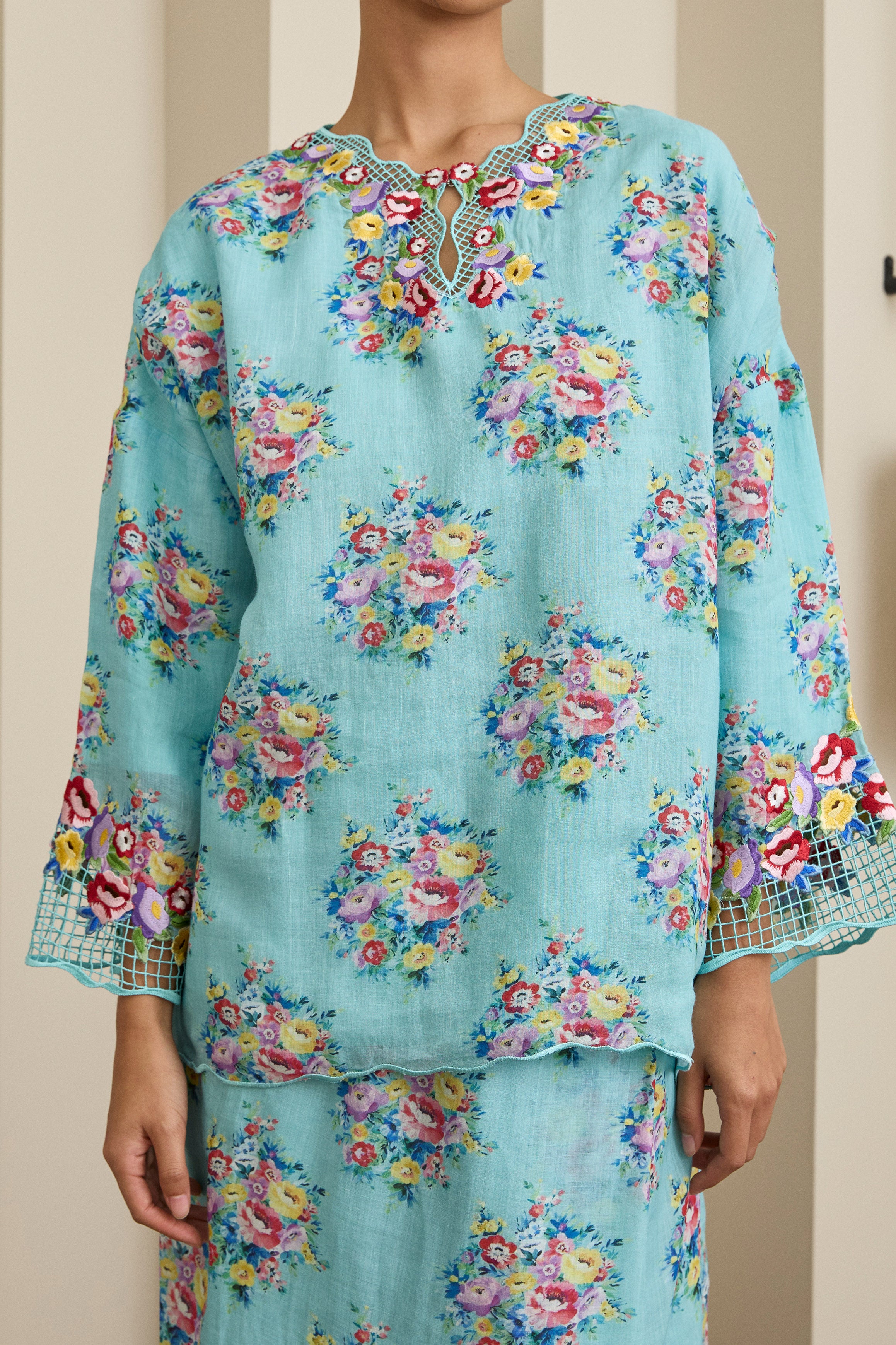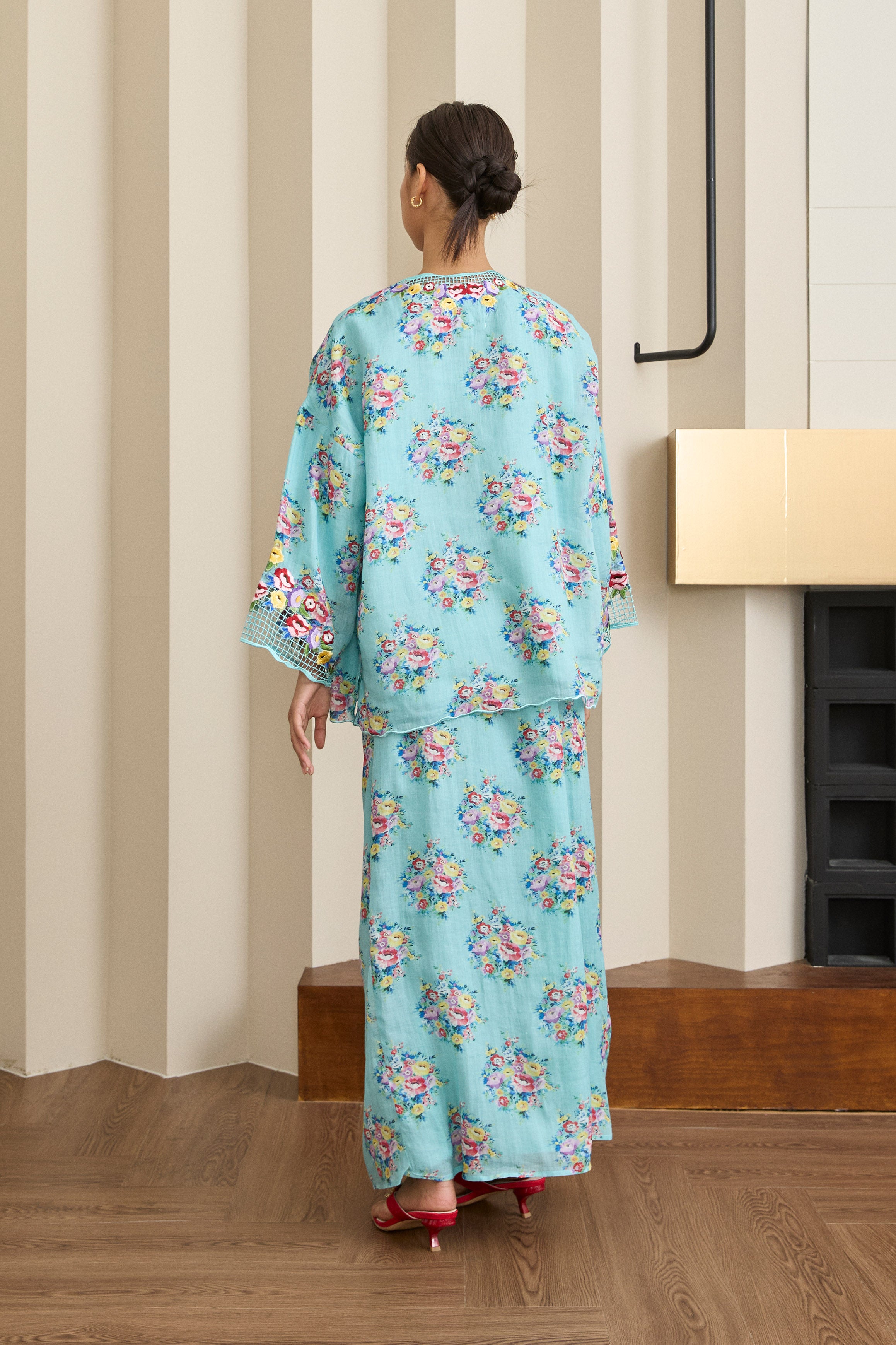 Accented with intricate Sulam Goyang embroidery along the neckline and sleeve openings