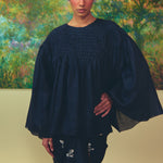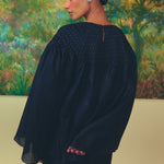 Clio Hand-Stitched Honeycomb Blouse in Midnight