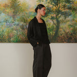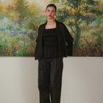 Tailored with a subtle sheen and shantung texture, with a gently tapered silhouette. Features front side pockets, back welt pocket, and an elasticised back waistband for a flexible fit.