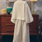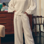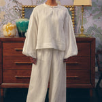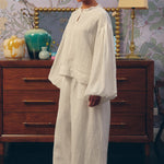 Flared high-waisted trousers, rendered in Ramie. Fully lined in cotton. Finished with side pockets, and a side zip closure.