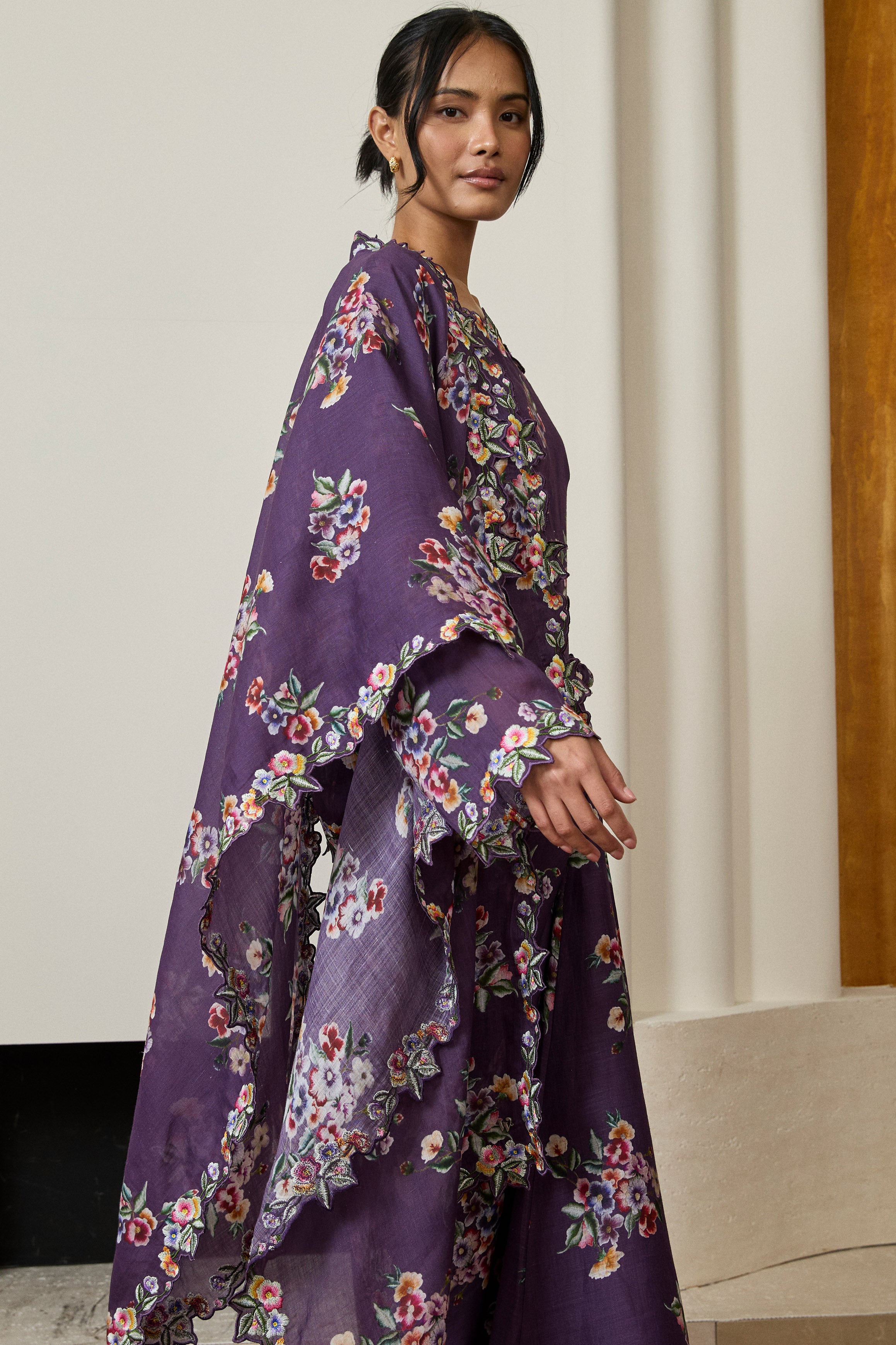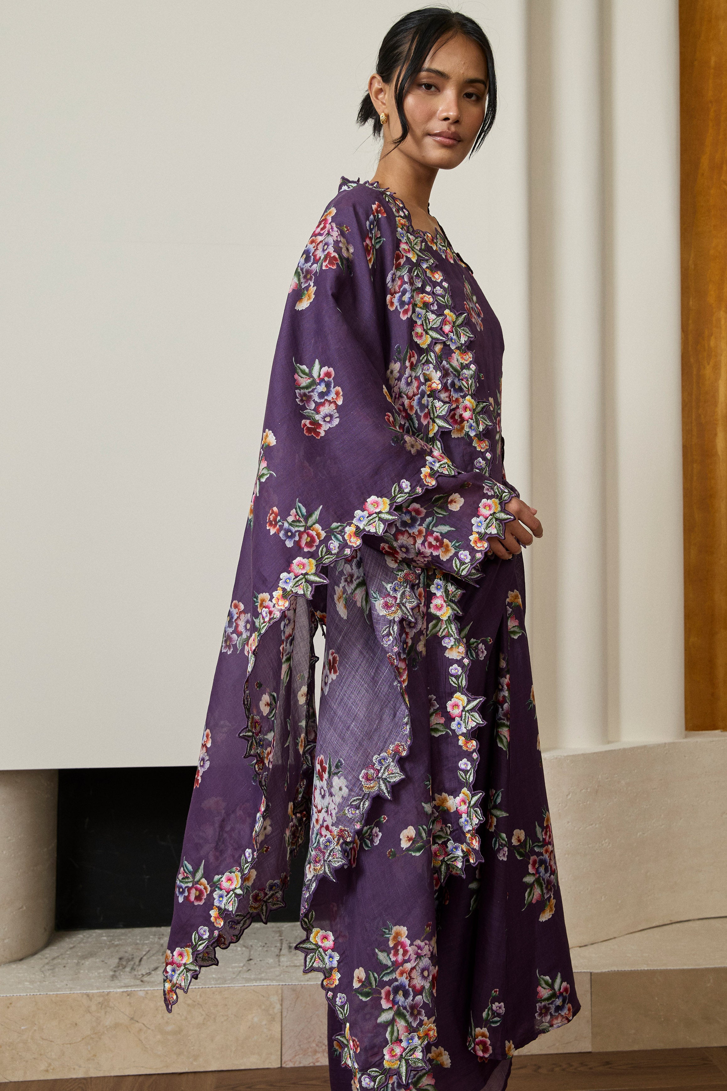 Midsummer Ramie Floral Selendang in Purple