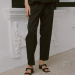 Trousers with front pleats, side pockets and a clean tapered leg. Rendered in cotton. Finished with a structured waistband and subtle back welt pocket.