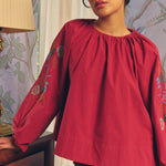 Frida Poplin Blouse in Ruby