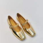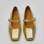 A classic, leather Mary Jane flat. Designed with a secure instep strap and soft sheep skin lining. A low heel for all-day comfort. Finished with a brass pin buckle.
