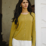 Iris Cable-Knit Cardigan in Chartreuse