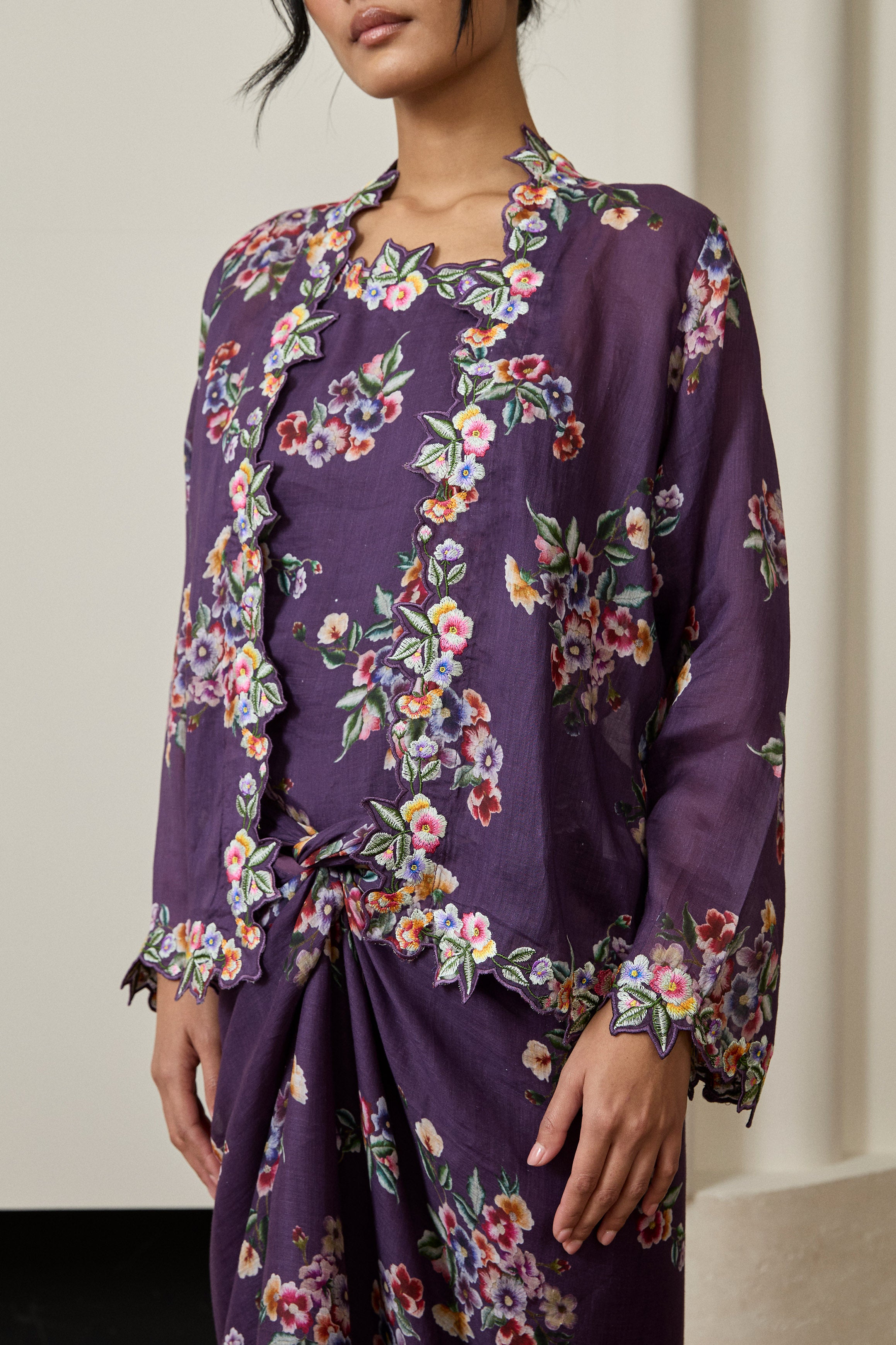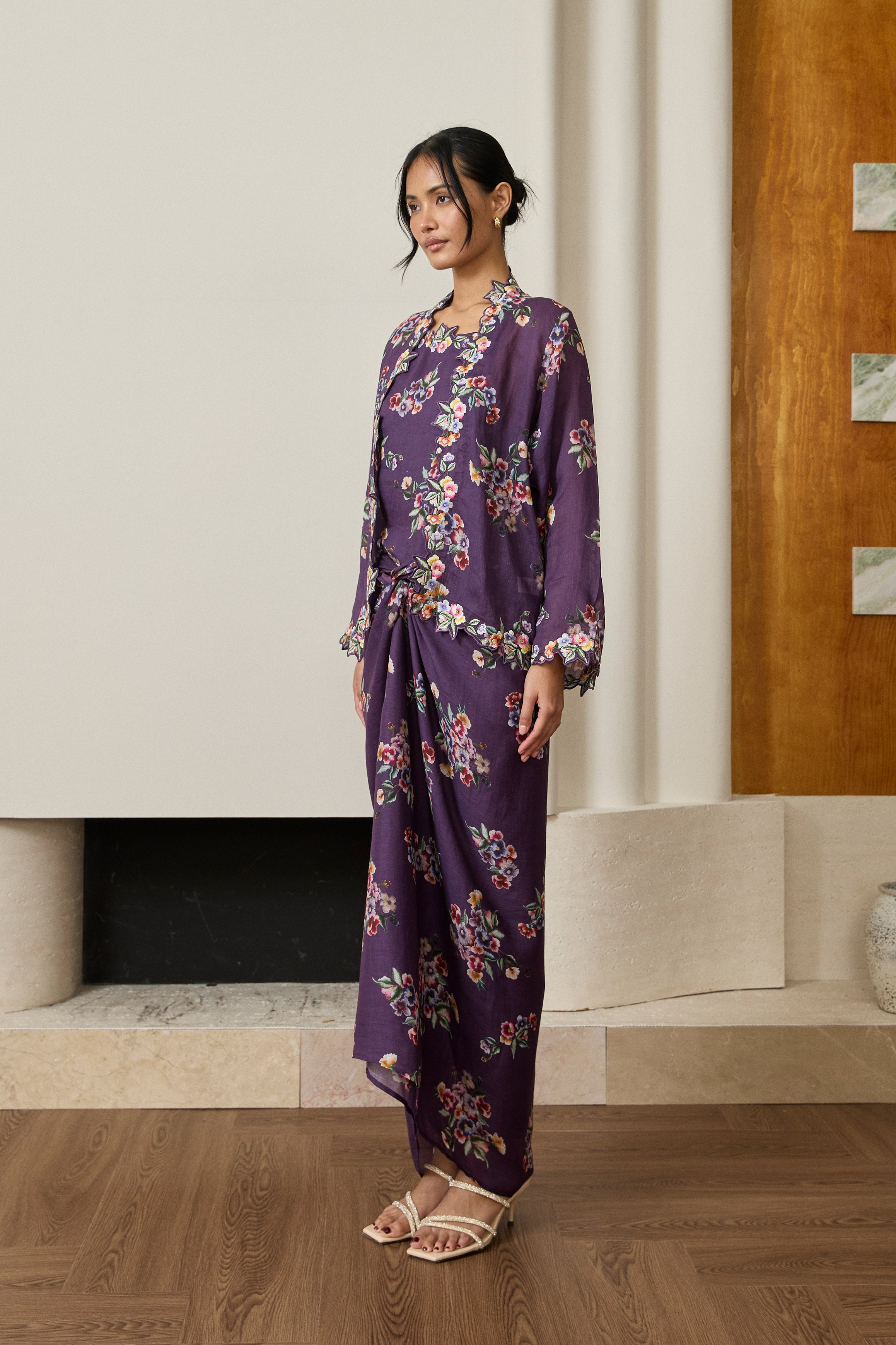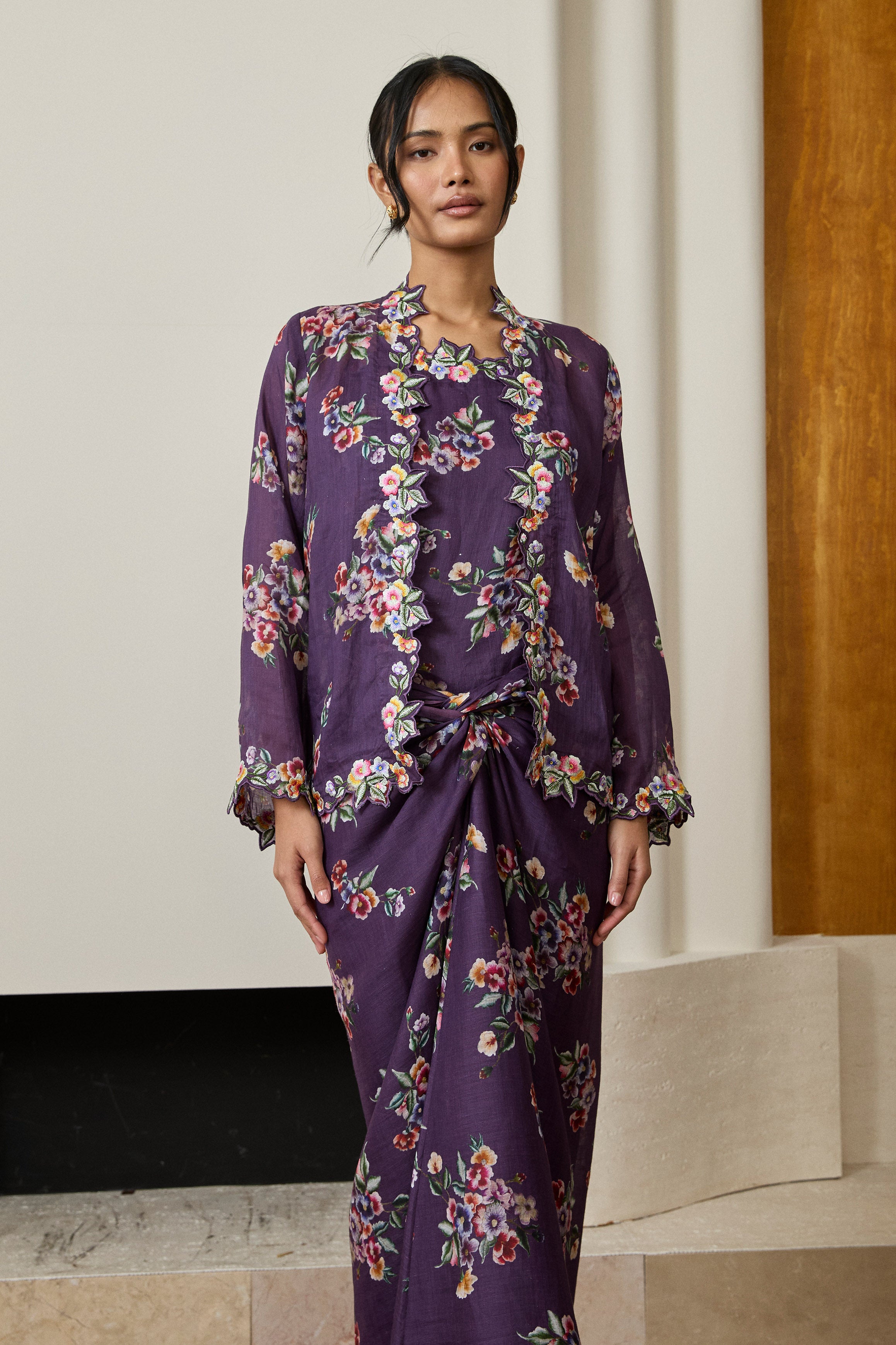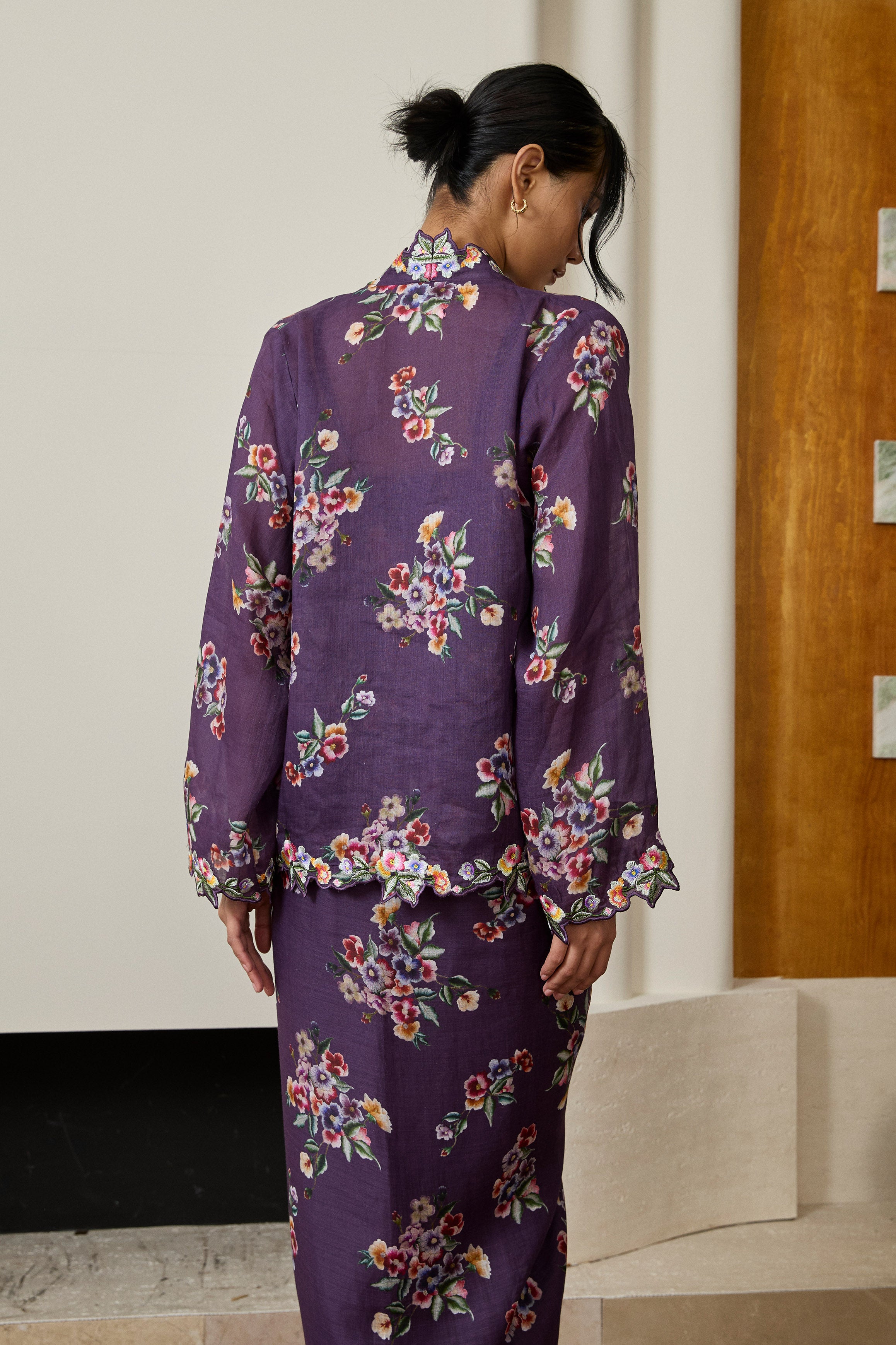 Midsummer 2-Piece Ramie Floral Kebaya Top in Purple