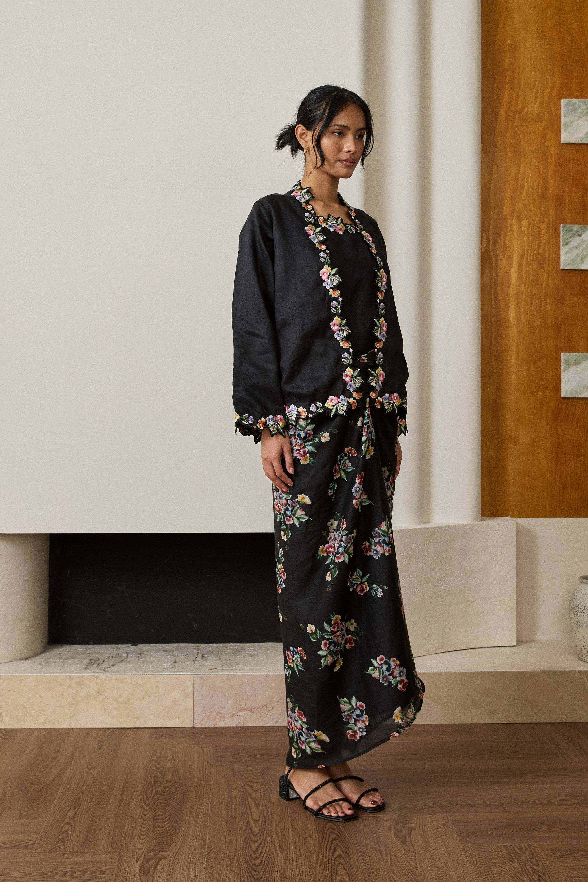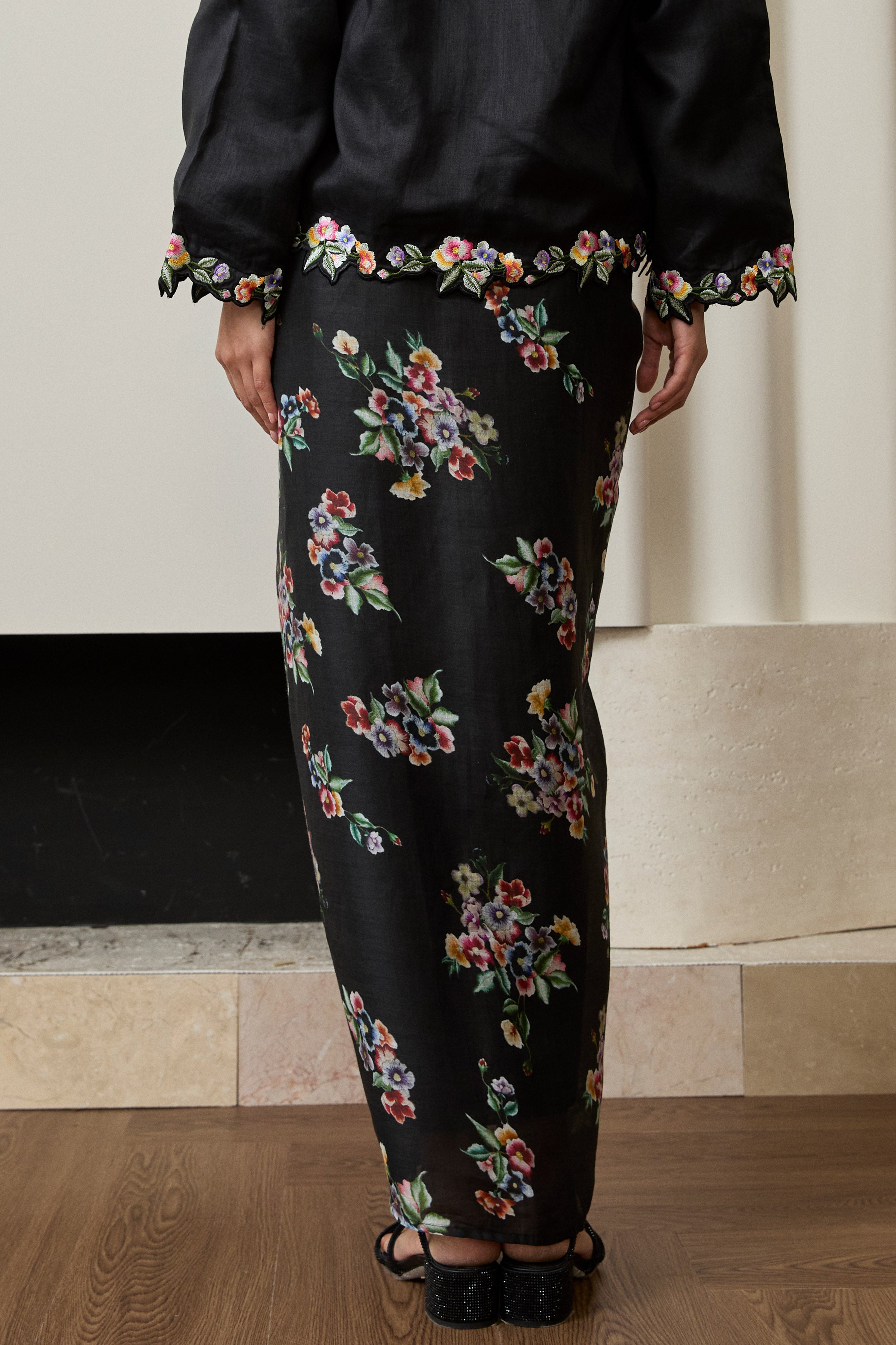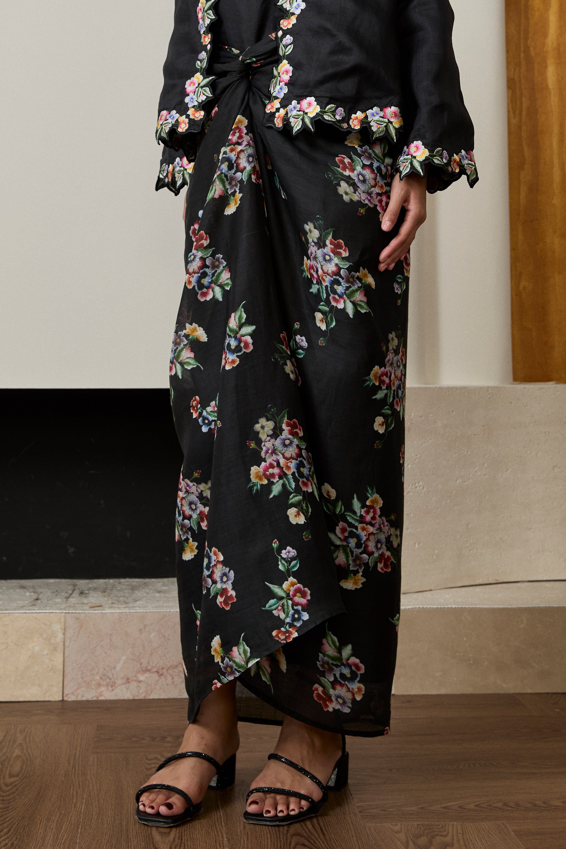 A true staple, this is a slip-on knot skirt that can be secured with a double knot. Finished with delicate trim detailing. Rendered in ramie, fully lined with cotton.