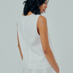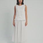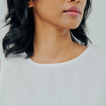 A relaxed A-line fit with a high neckline and concealed back zip. Rendered in linen, and fully lined in cotton.