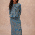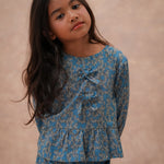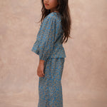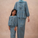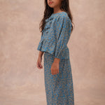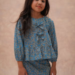 A redux of our beloved Painter’s Bow Blouse, now comes in a printed set and for the Mini one. Features playful bows, and flounce at the hem of the top. With full sleeves and a zip opening in the back, the set comes with a matching back-pleated skirt for easy movement.