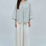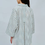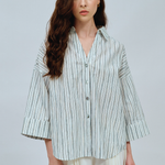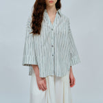 An oversized fit with an open V-neck and pointed collar, complemented by drop shoulders for an easygoing silhouette. Rendered in textured cotton poplin.