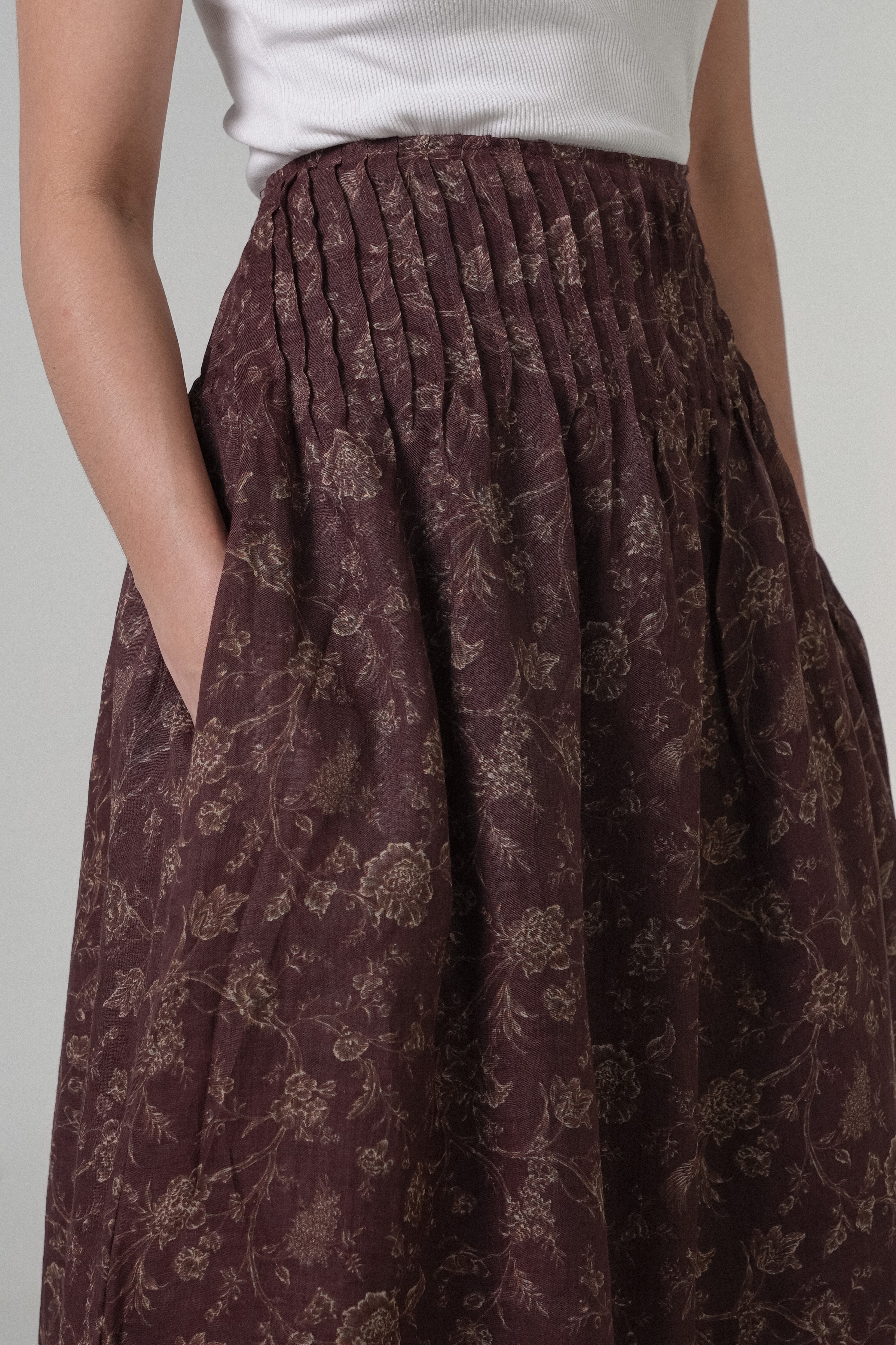 The Floral Ramie Skirt in Burgundy