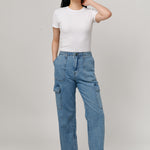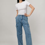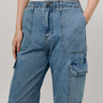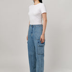 For those in pursuit of utility, rendered in cotton denim. Featuring two side pockets, two patch pockets, and two back pockets. Finished with the signature Whimsigirl metal logo button.