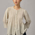 A relaxed, feminine silhouette in cotton, with a plaid weave pattern. Features micro pintuck detailing and a round neck with lace-trimmed button opening. Finished with bracelet-length sleeves.